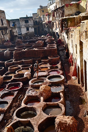 A large part of the charm of Fez is that sense of a different time. While you will see all the evidence of modern cultural influence from blue jeans to boom boxes to modern goods, a traveler can not shake that sense of the past, from the narrow streets, to the buildings of old stone and wood, palaces and Islamic schools with elaborate entrances, to all the various sights that remind one of the past from ramparts, balconies, and courtyards to the walls that were once used for defense. The voices of people—from old men, to merchants, to children—envelop this giant human beehive of a city, enticing you in and leaving its mark.